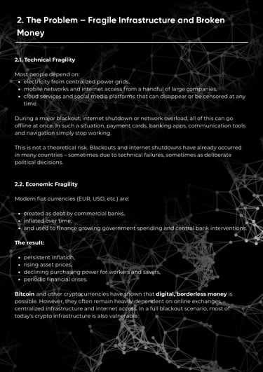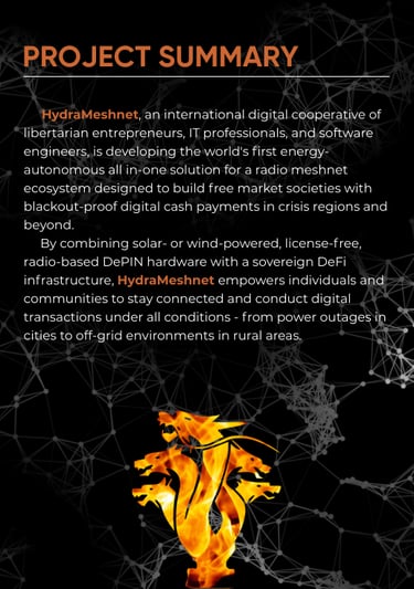 The energy-autonomous all-in-one radio meshnet solution for building free market societies with blackout-proof digital cash payments in crisis regions and beyond.